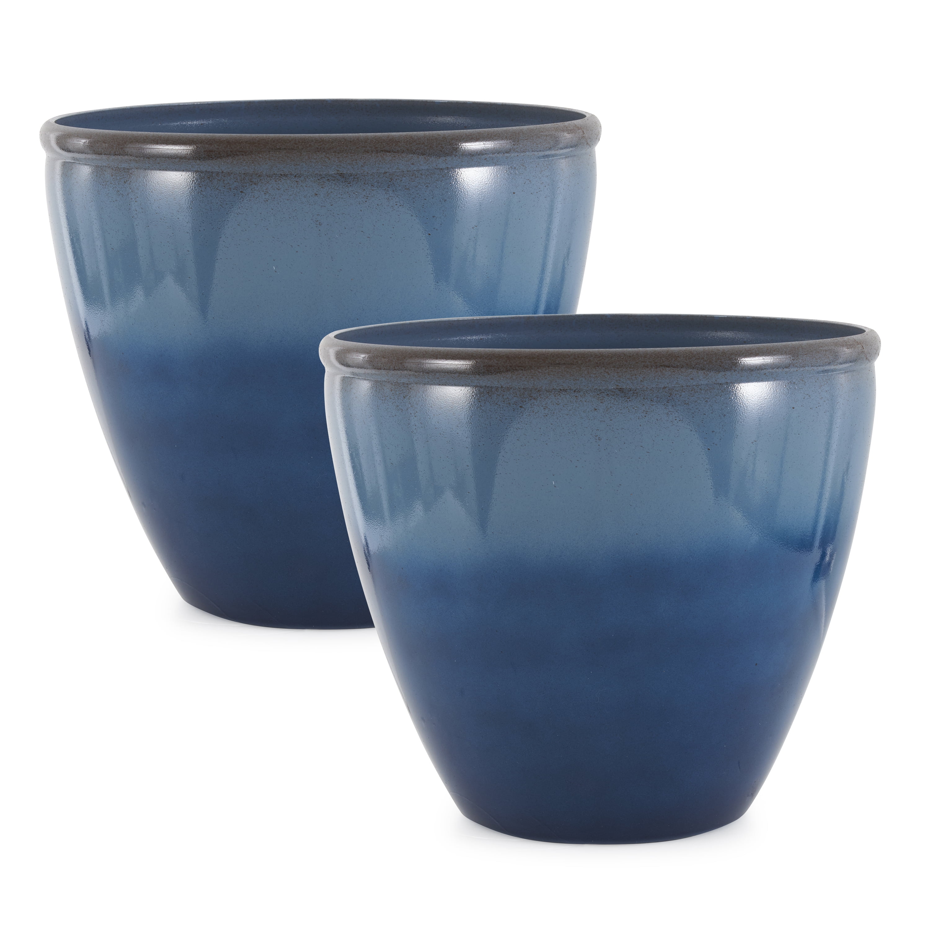 Suncast Seneca 16 Inch Ombre Decorative Resin Planter Pot Blue Brown 2 Pack Walmart Com