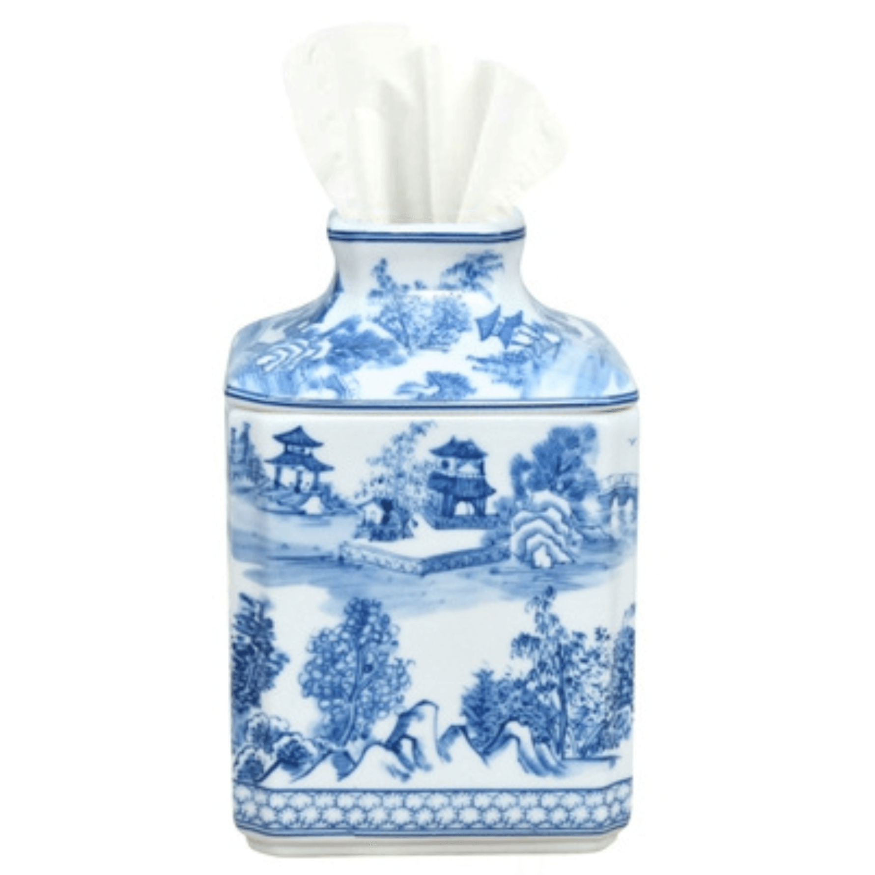 Porcelain Blue White Chinoiserie Square Tissue Box Cover The Well Appointed House